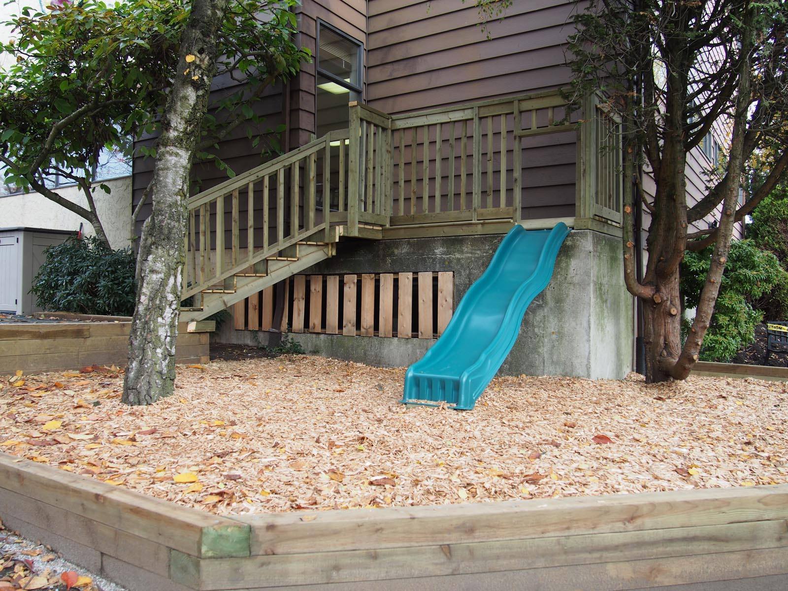 The JK II Classroom is very unique with a very airy, open environment, and very tall, vaulted ceilings. The large two story windows let in an abundance of natural light and ensure that the classroom always feels warm and bright on a nice day. The building has been a part of the Marpole community for many decades and lends itself very well to our natural philosophy with its nostalgic character. We are also lucky to have a wonderful outside area, as well as the benefit of access to both the nearby parks (Ebisu Park and Marpole park), and to the JK I playground for variety and neighborhood walks!